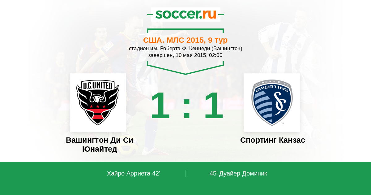 Протокол матча Вашингтон Ди Си Юнайтед против Спортинг Канзас