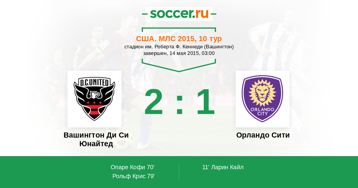 Протокол матча Вашингтон Ди Си Юнайтед против Орландо Сити
