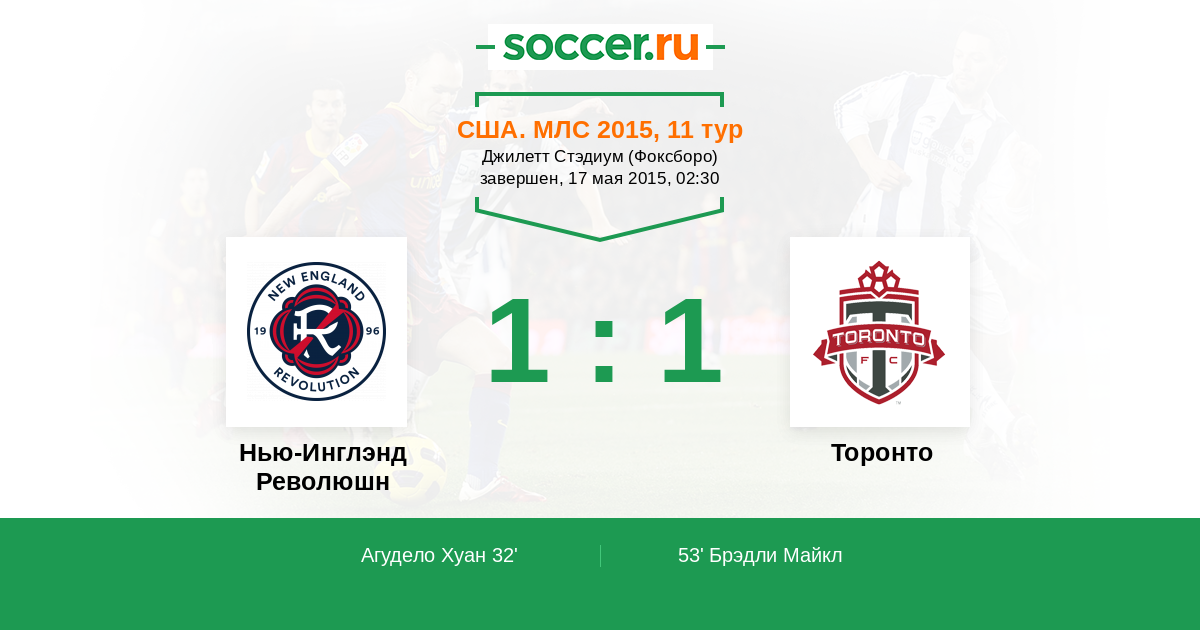 Протокол матча Нью-Инглэнд Революшн против Торонто