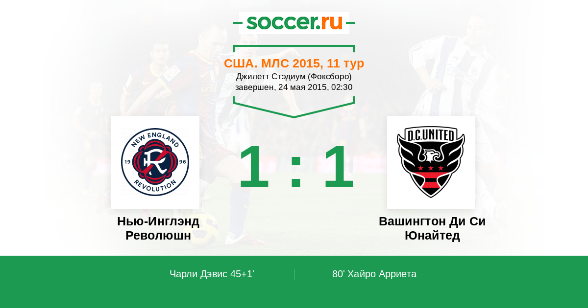 Протокол матча Нью-Инглэнд Революшн против Вашингтон Ди Си Юнайтед