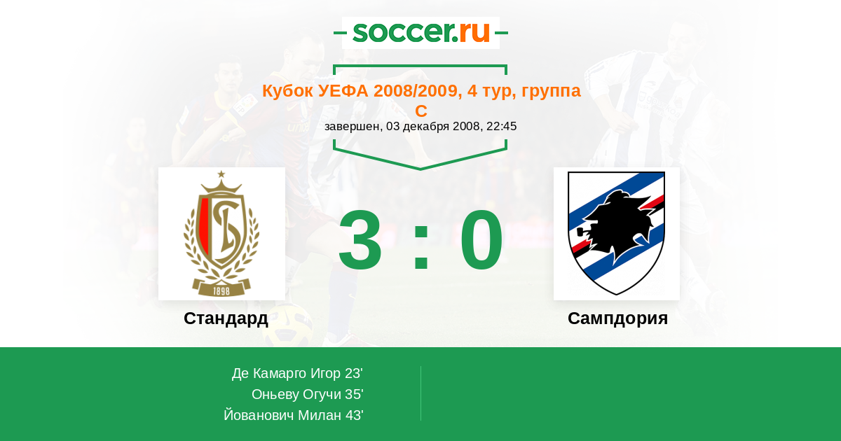 Протокол матча Стандард против Сампдория