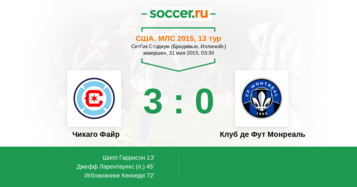 Протокол матча Чикаго Файр против Клуб де Фут Монреаль