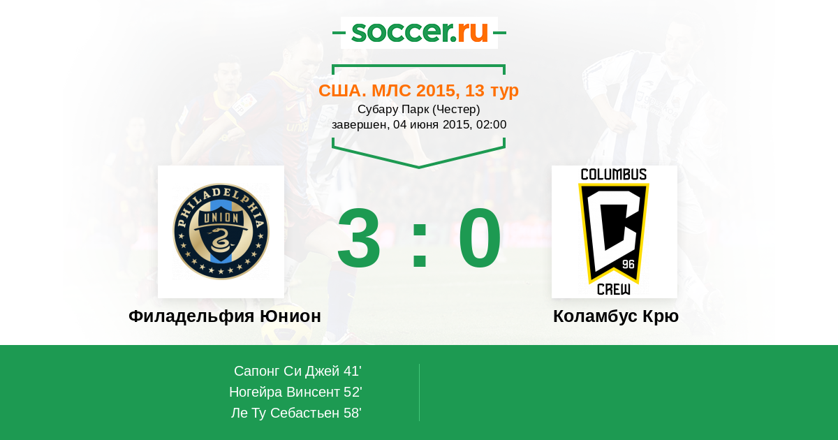 Протокол матча Филадельфия Юнион против Коламбус Крю