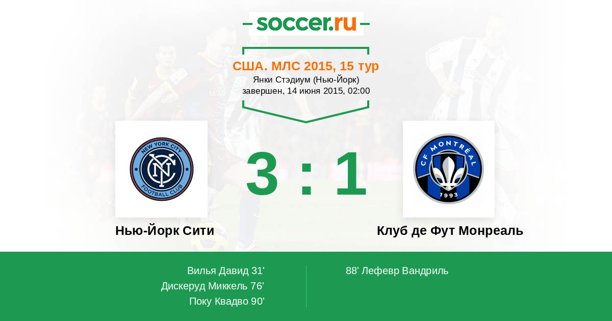 Протокол матча Нью-Йорк Сити против Клуб де Фут Монреаль