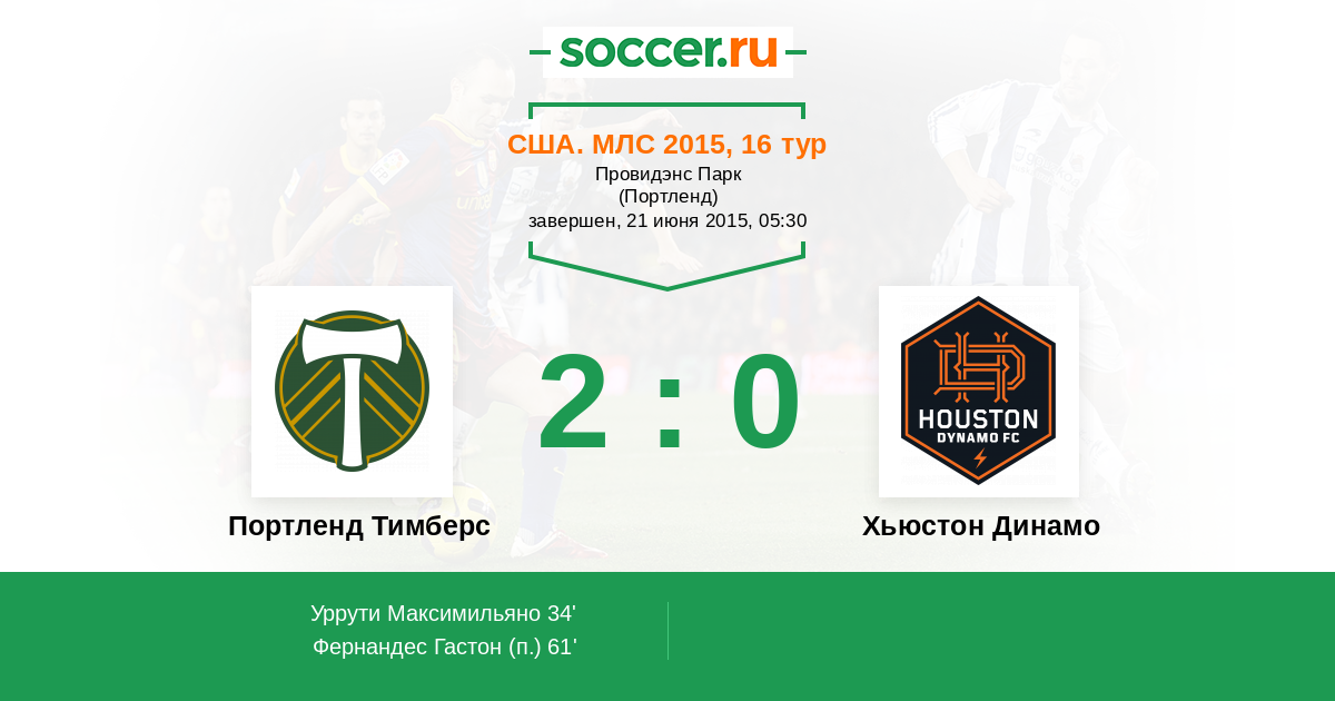 Протокол матча Портленд Тимберс против Хьюстон Динамо