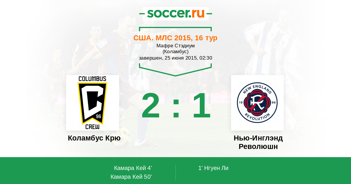 Протокол матча Коламбус Крю против Нью-Инглэнд Революшн