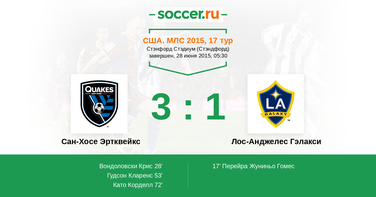 Протокол матча Сан-Хосе Эртквейкс против Лос-Анджелес Гэлакси