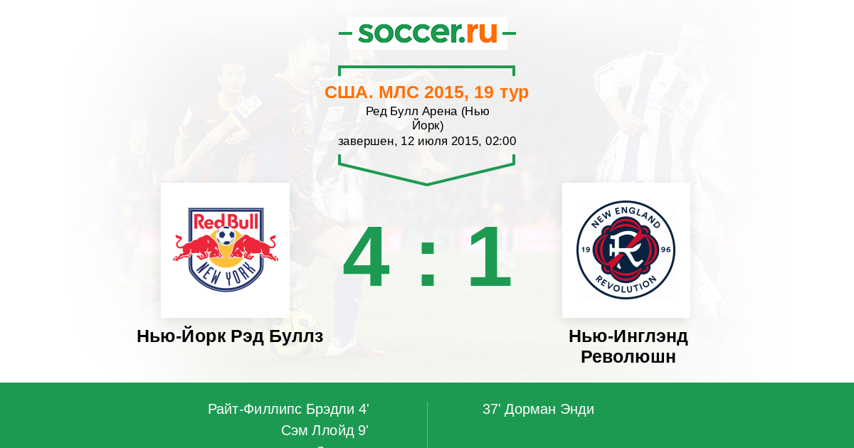 Протокол матча Нью-Йорк Рэд Буллз против Нью-Инглэнд Революшн