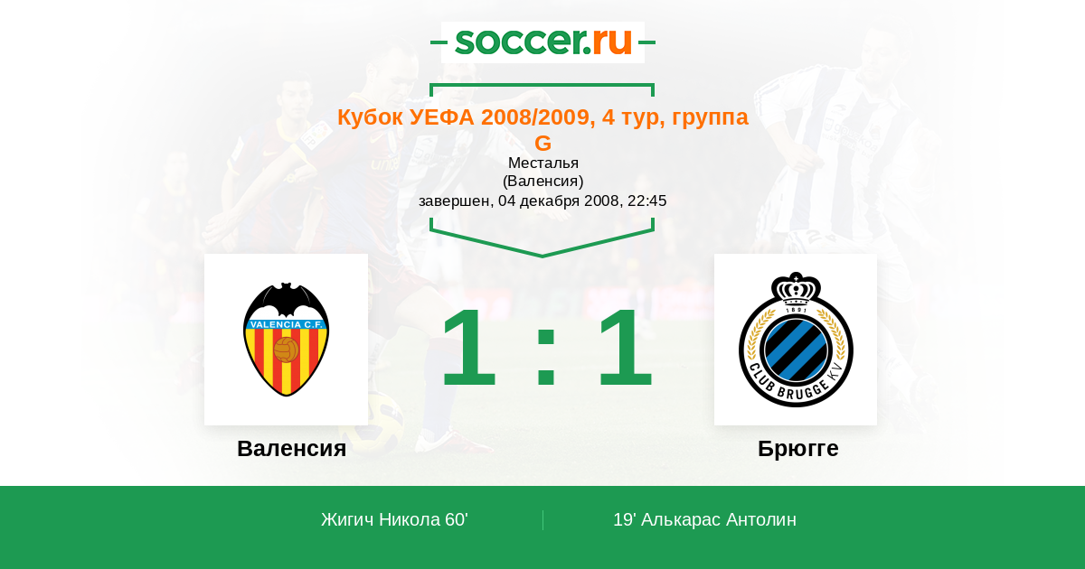 Протокол матча Валенсия против Брюгге