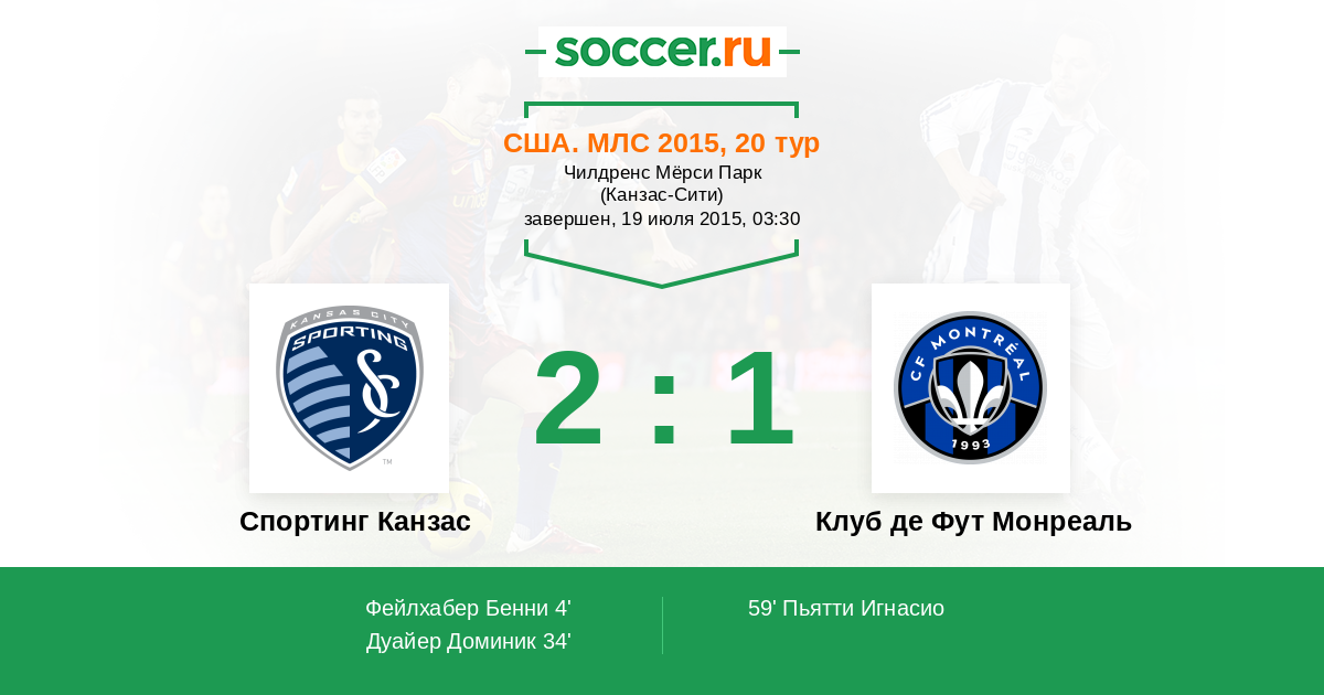Протокол матча Спортинг Канзас против Клуб де Фут Монреаль