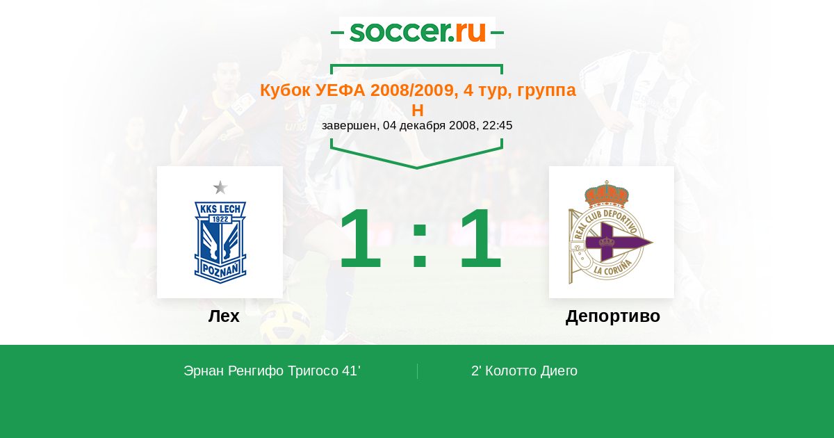 Протокол матча Лех против Депортиво