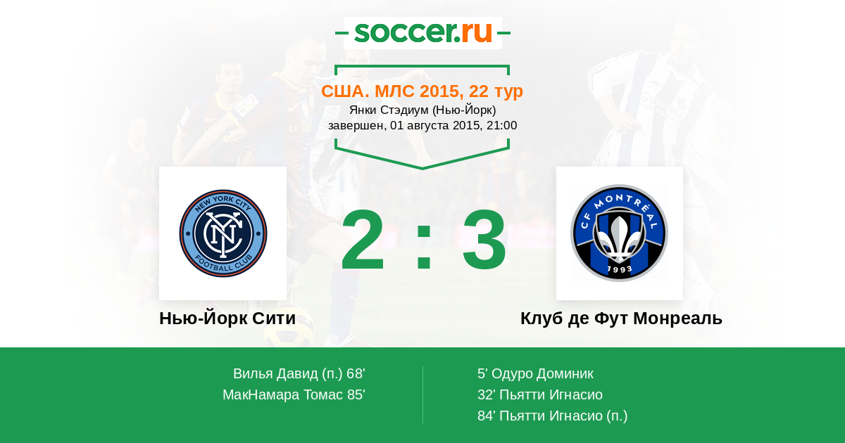 Протокол матча Нью-Йорк Сити против Клуб де Фут Монреаль