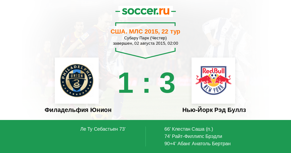 Протокол матча Филадельфия Юнион против Нью-Йорк Рэд Буллз