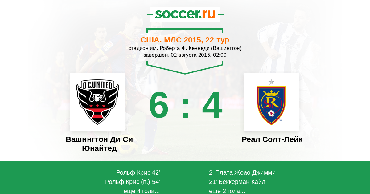 Протокол матча Вашингтон Ди Си Юнайтед против Реал Солт-Лейк