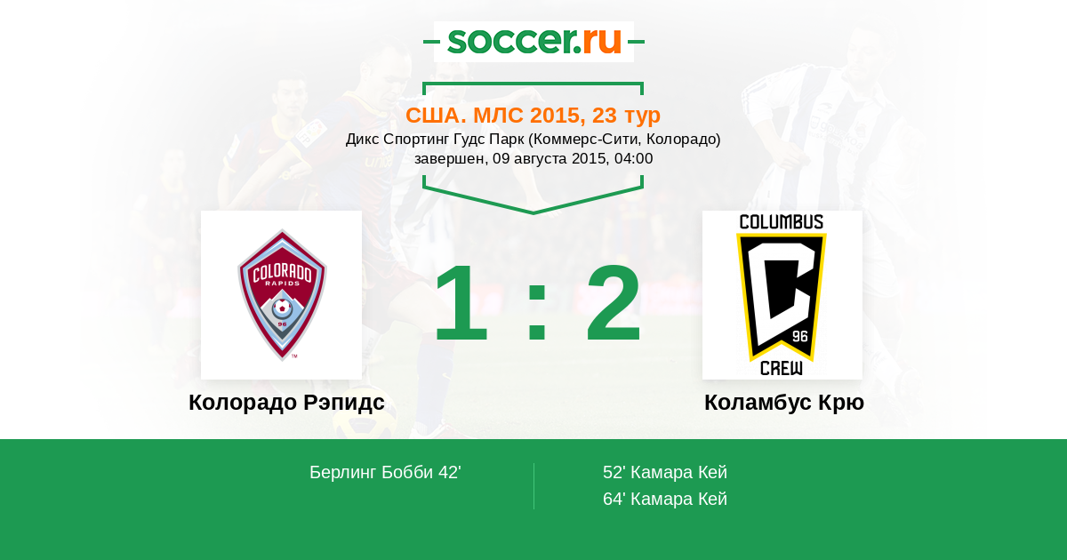 Протокол матча Колорадо Рэпидс против Коламбус Крю
