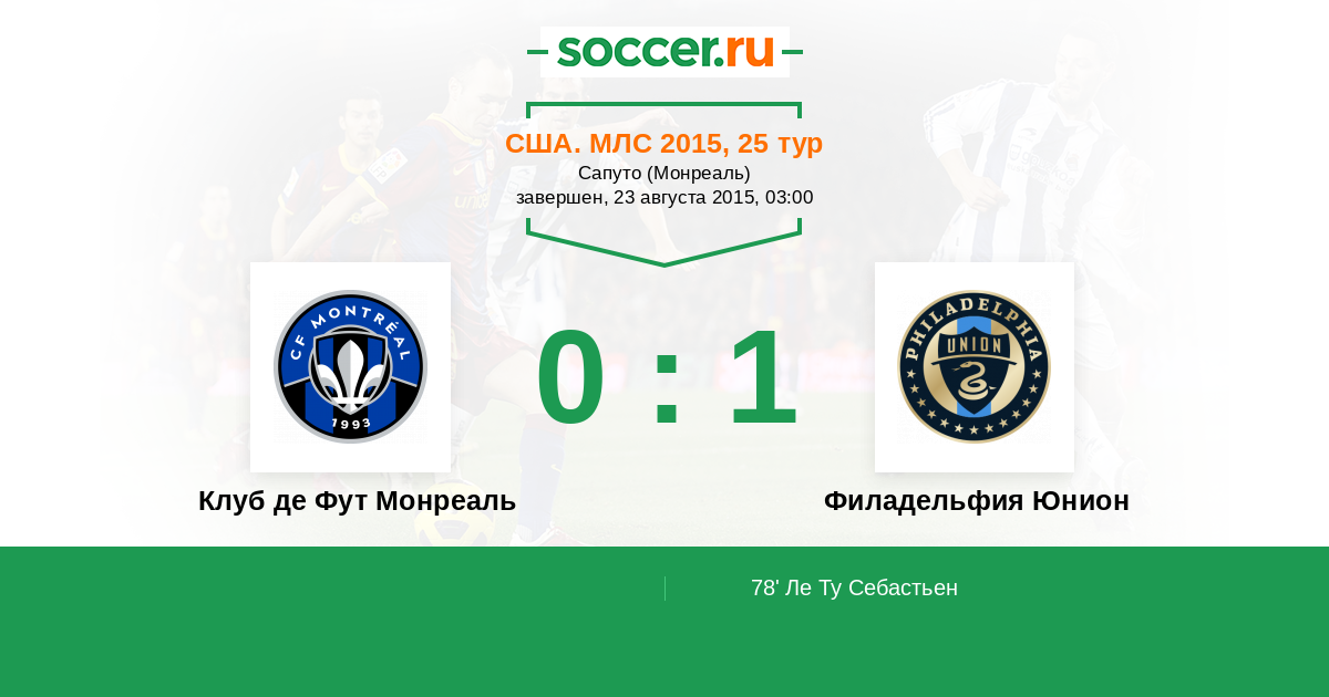 Протокол матча Клуб де Фут Монреаль против Филадельфия Юнион