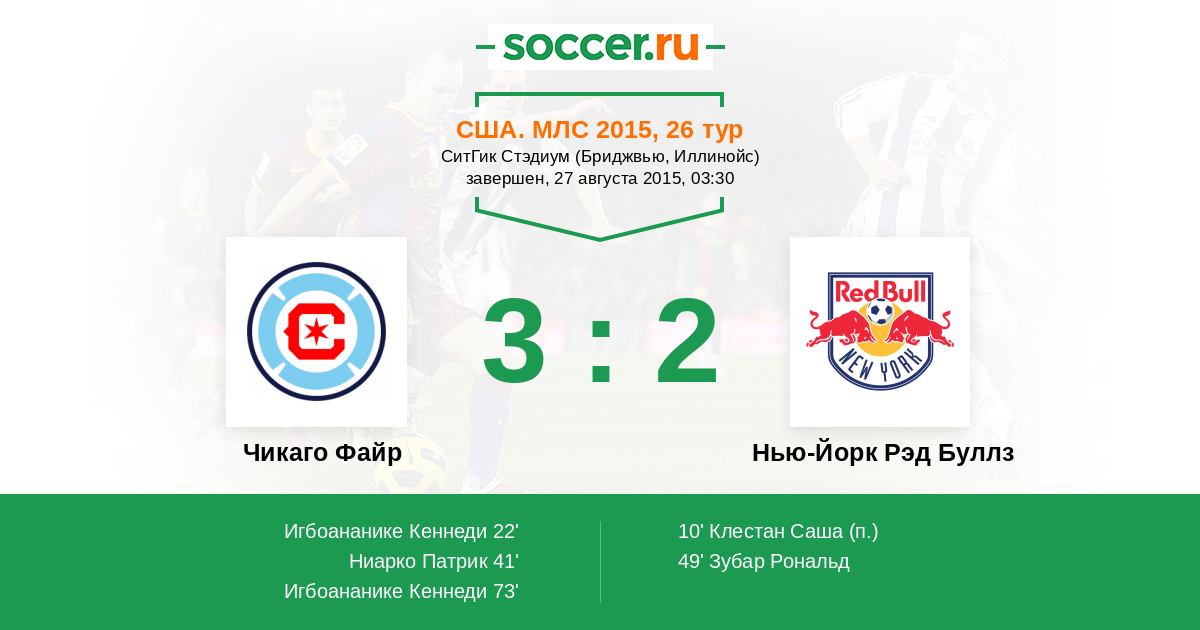 Протокол матча Чикаго Файр против Нью-Йорк Рэд Буллз