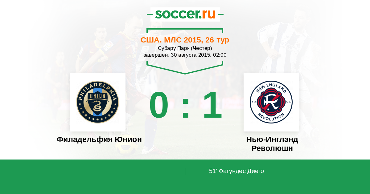 Протокол матча Филадельфия Юнион против Нью-Инглэнд Революшн