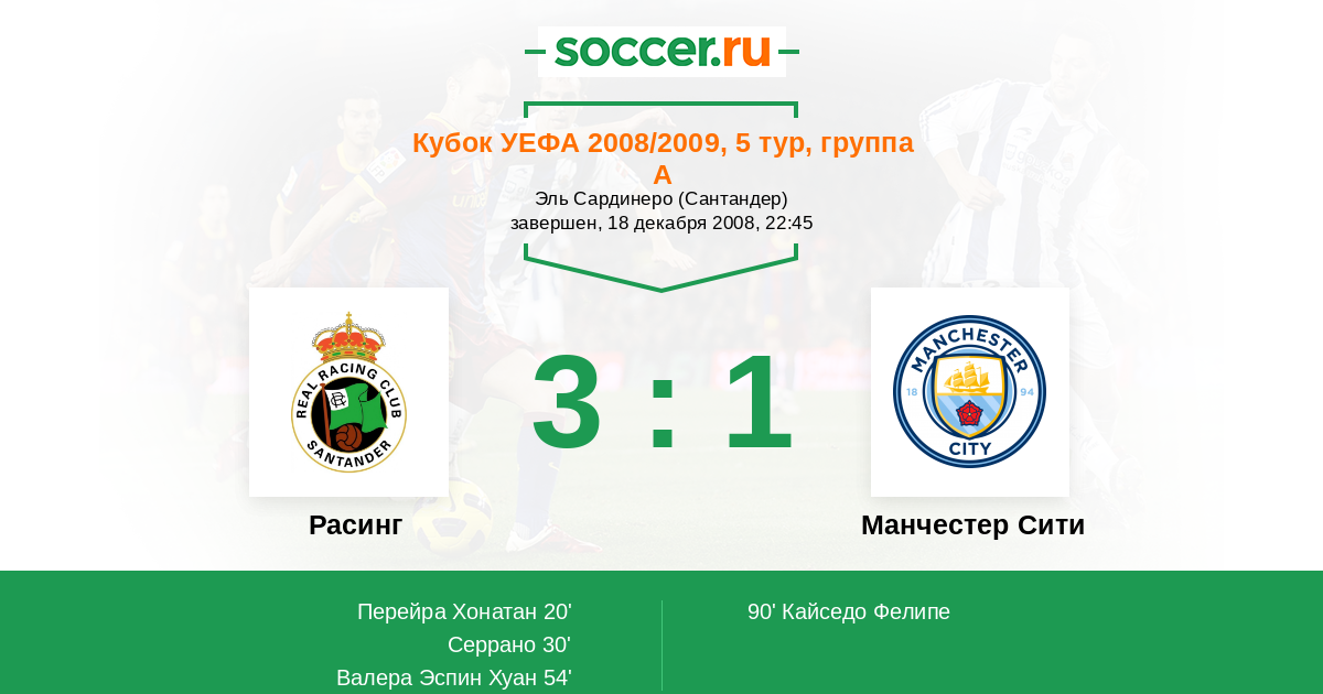 Протокол матча Расинг против Манчестер Сити