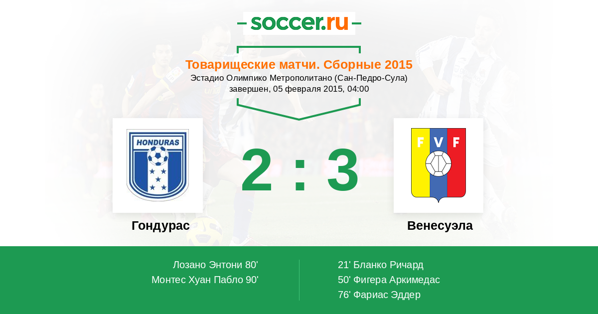 Протокол матча Гондурас против Венесуэла