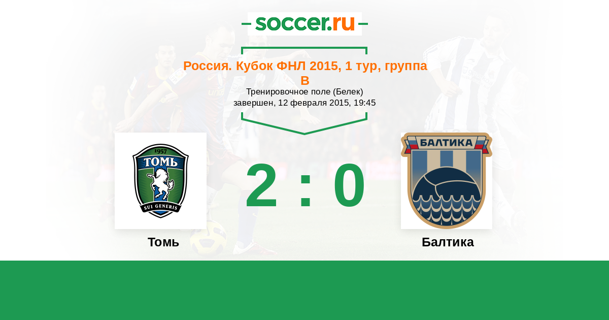 Россия. Первая лига 25.10.2015 Томь Логотип футбольный клуб Томь (Томск) 2:1 Логотип футбольный клуб Балтика (Калининград) Балтика
