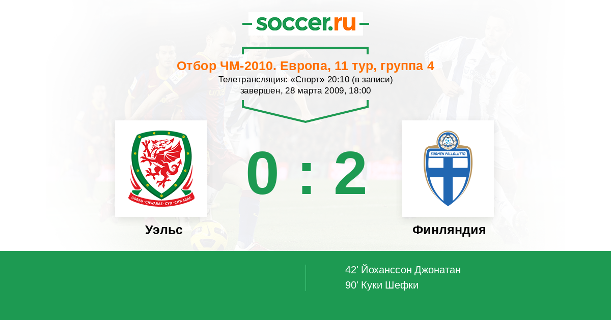 Протокол матча Уэльс против Финляндия