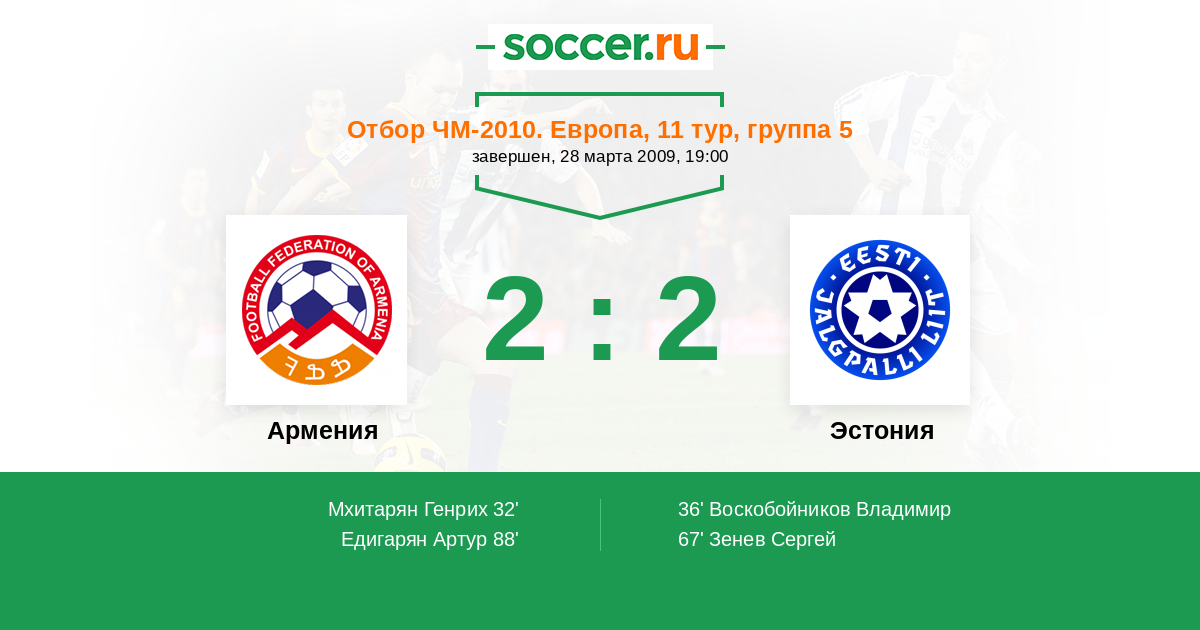 Протокол матча Армения против Эстония