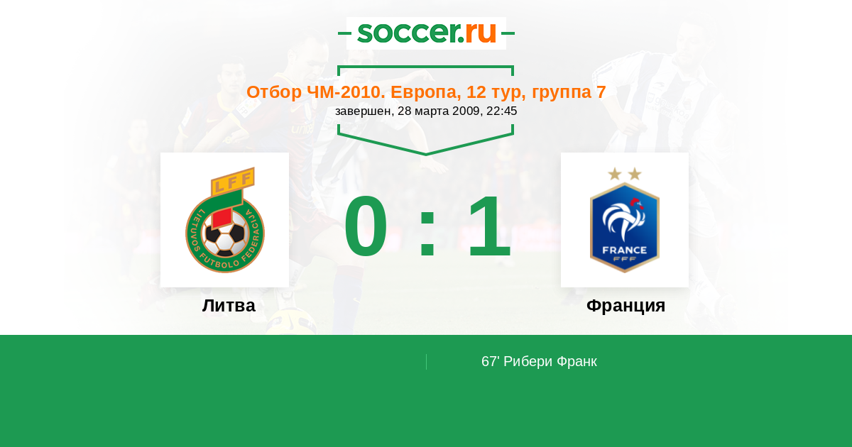 Протокол матча Литва против Франция
