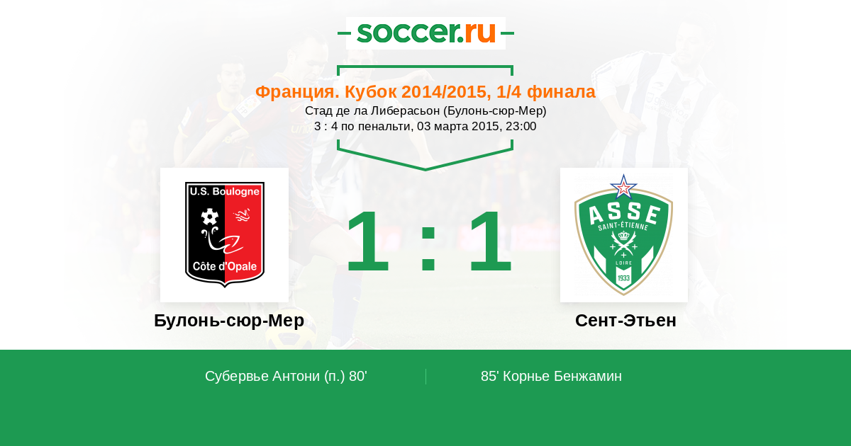 Протокол матча Булонь-сюр-Мер против Сент-Этьен