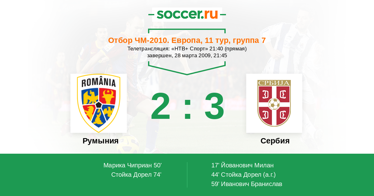 Протокол матча Румыния против Сербия