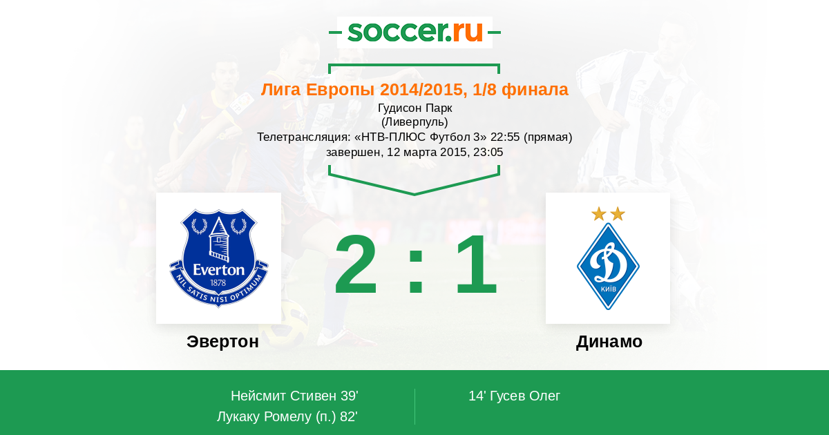 39' (1:1) Нейсмит Стивен (14) (Лукаку Ромелу (10))