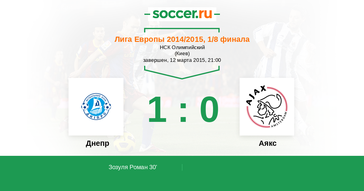 30' (1:0) Зозуля Роман (18) (Коноплянка Евгений (10))