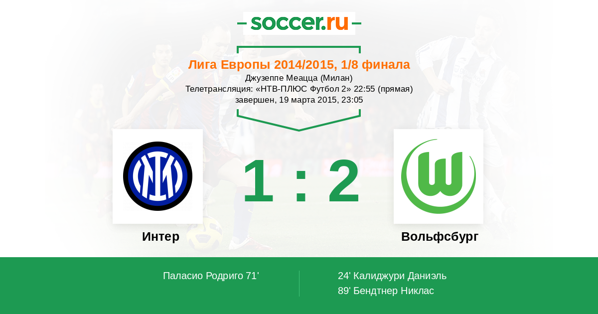 Протокол матча Интер против Вольфсбург