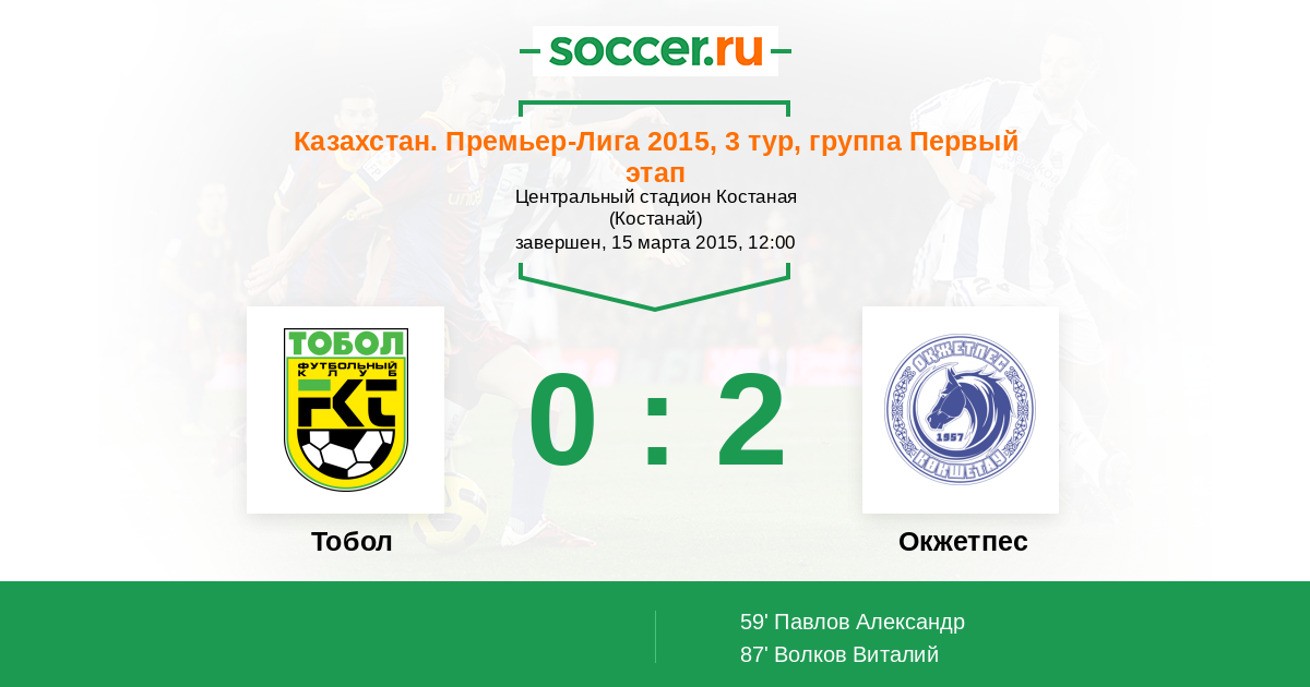 Протокол матча Тобол против Окжетпес