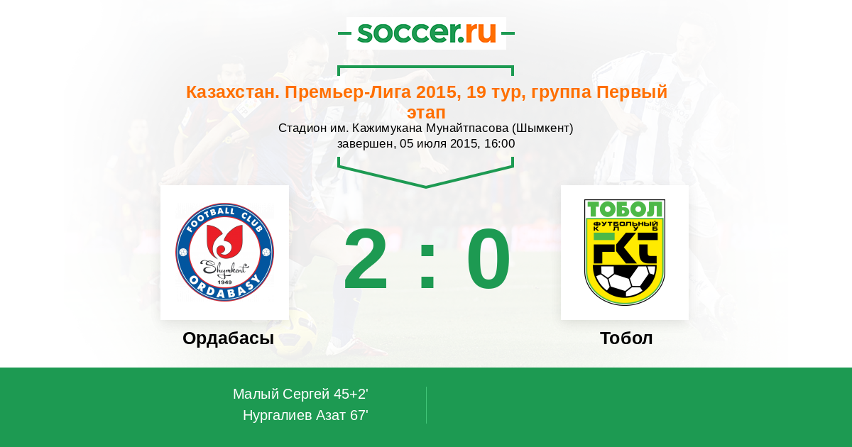 Протокол матча Ордабасы против Тобол