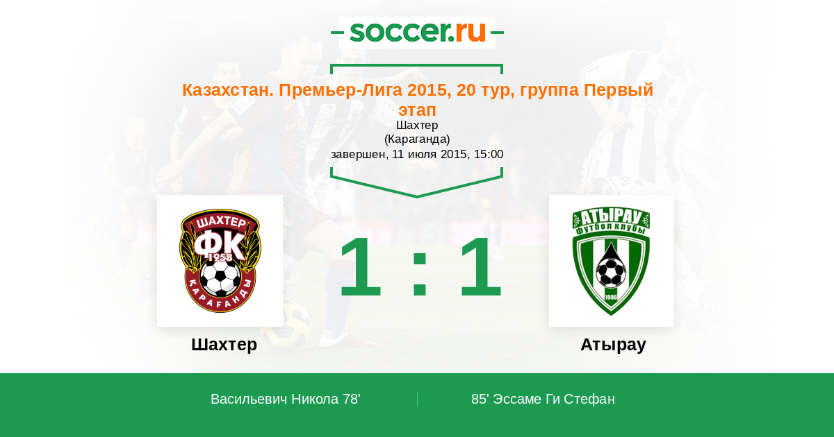 Протокол матча Шахтер против Атырау