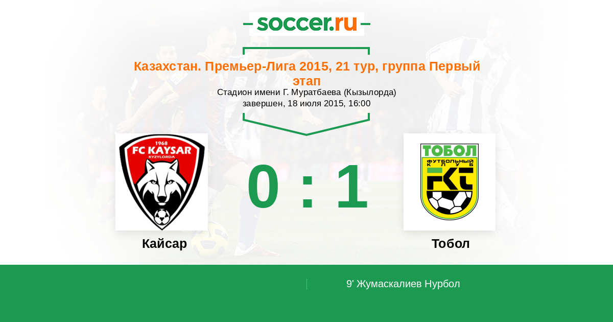 Протокол матча Кайсар против Тобол