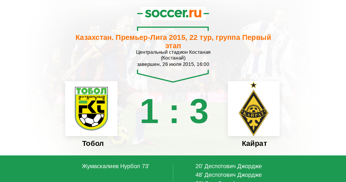 Протокол матча Тобол против Кайрат