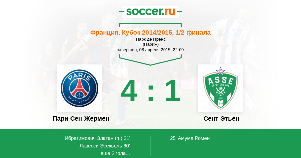 Протокол матча Пари Сен-Жермен против Сент-Этьен