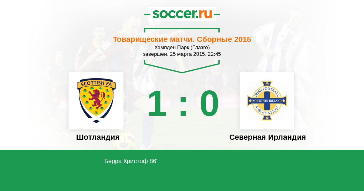 Протокол матча Шотландия против Северная Ирландия