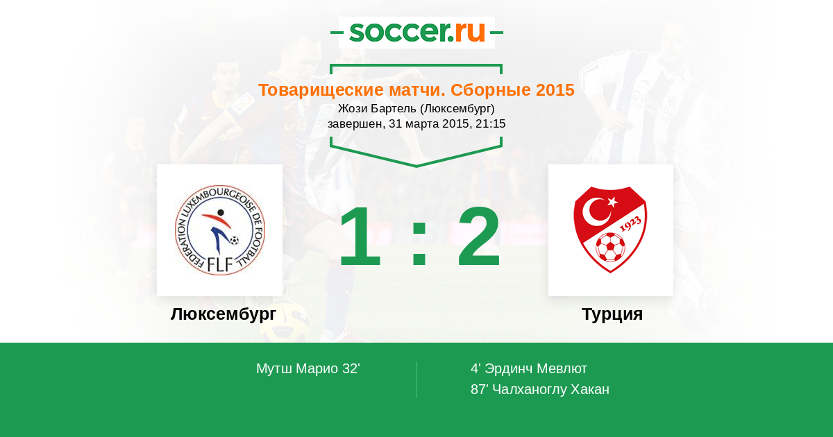 Протокол матча Люксембург против Турция
