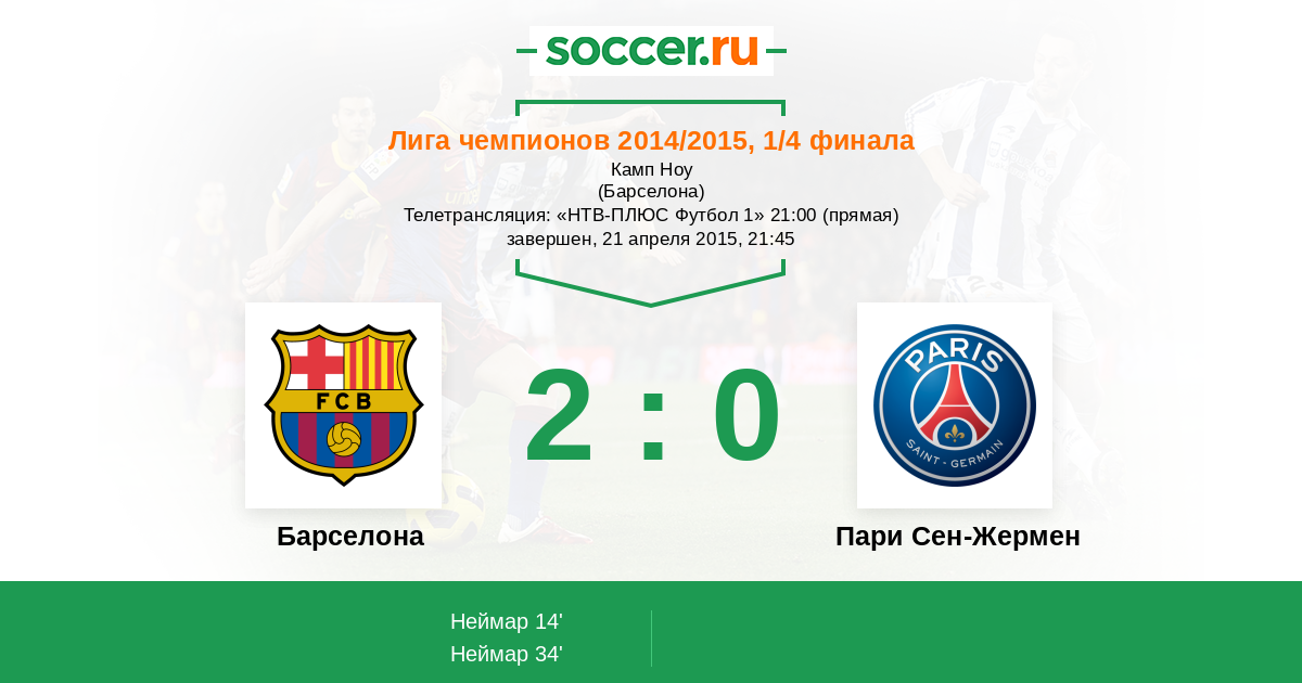 Протокол матча Барселона против Пари Сен-Жермен