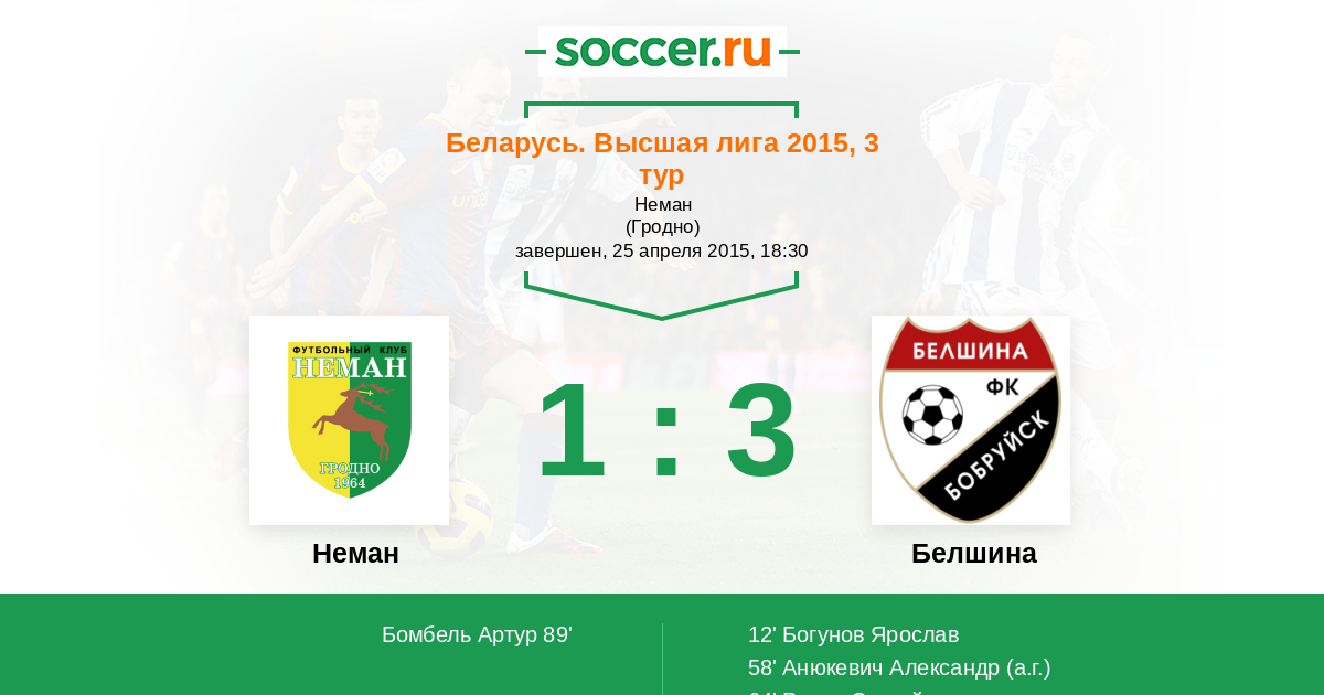 Протокол матча Неман против Белшина