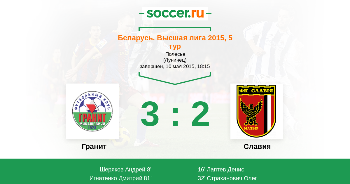 Протокол матча Гранит против Славия