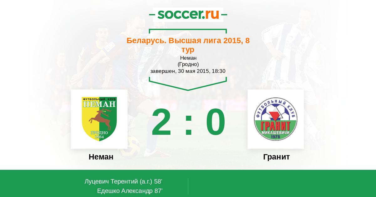 Протокол матча Неман против Гранит