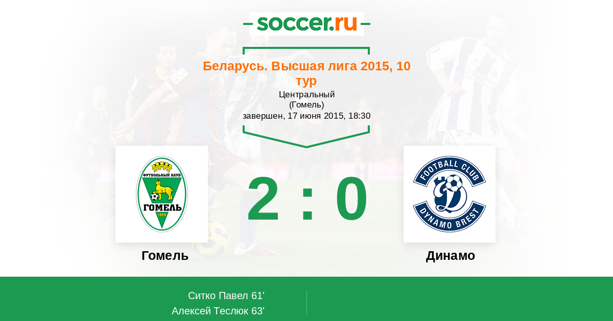 Протокол матча Гомель против Динамо