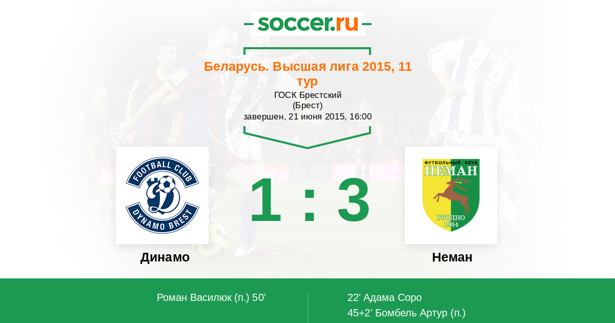 Протокол матча Динамо против Неман