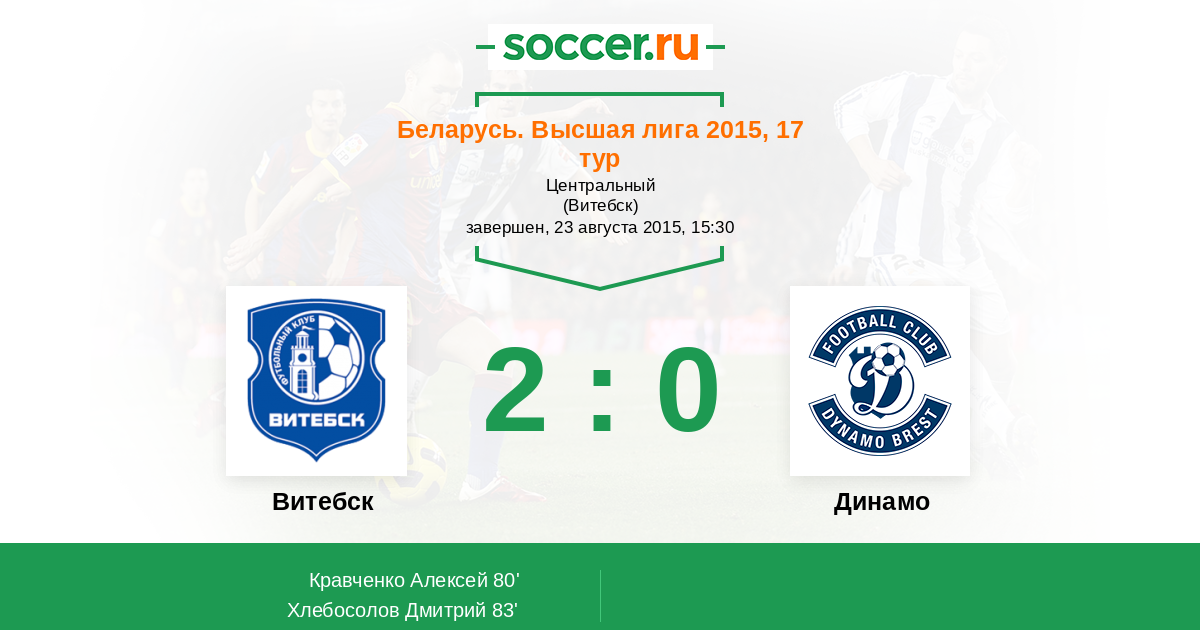 Протокол матча Витебск против Динамо