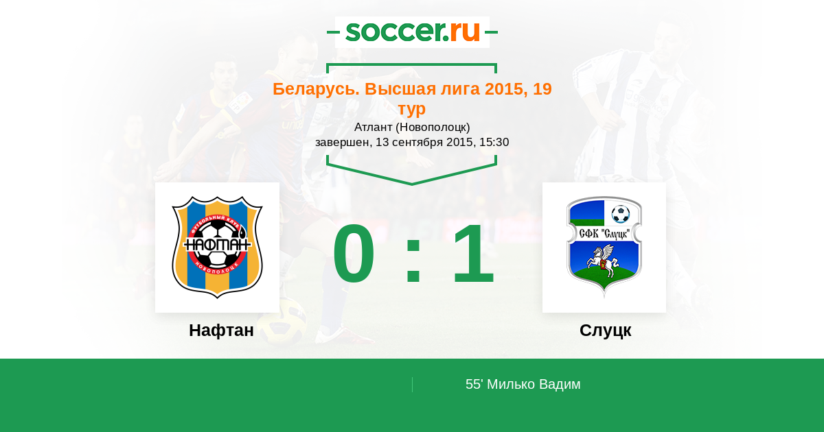 Протокол матча Нафтан против Слуцк