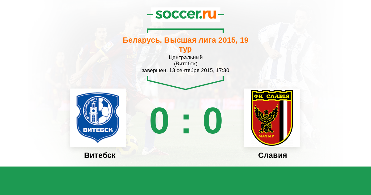 Беларусь. Первая лига 13.09.2014 Витебск Логотип футбольный клуб Витебск 0:3 Логотип футбольный клуб Славия (Мозырь) Славия